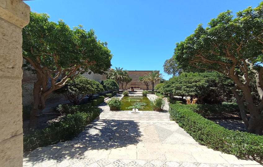 Un par de imágenes de dichos jardines con la imagen de La Alcazaba desde la ubicación de los mismos.